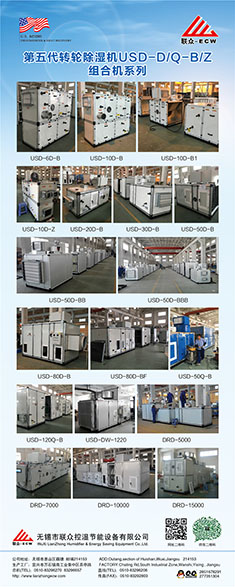 無錫市聯眾控濕節(jié)能設備有限公司成立于2004年2月,是一家長期致力于把空氣吸附分離技術應用于空氣處理設備的科技型中外合作 企業(yè),主要研發(fā)生產轉輪除濕機組、熱泵除濕機組、空氣與空氣熱 能交換回收機組、蒸發(fā)冷卻空調機組、有機廢氣凈化處理機組等非 標空氣處理設備。隨著生產規(guī)模的不斷壯大和產業(yè)化的精細分工, 聯眾公司與2011年10月在江蘇省宜興市萬石鎮(zhèn)工業(yè)園茶亭路8號, 一期投資5000萬元,置地25畝、建標準工業(yè)廠房10000平方米和辦 公樓3000平方米,重新注冊成立江蘇聯眾聯勝節(jié)能設備有限公司。 企業(yè)領導層決定確立江蘇聯眾聯勝公司以研發(fā)生產蒸發(fā)冷卻空調機 組、有機廢氣凈化處理機組等大型節(jié)能環(huán)保空氣處理設備為主;而無錫聯眾控濕公司則在無錫繼續(xù)以研發(fā)生產轉輪除濕機組、熱泵除濕機組、空氣與空氣熱交器為主。在國內暖通空調工程領域,聯眾控濕公司研發(fā)各類轉輪除濕機的技術能力、生產各類轉輪除濕機的 裝備制造工藝水平處于本行業(yè)前沿。